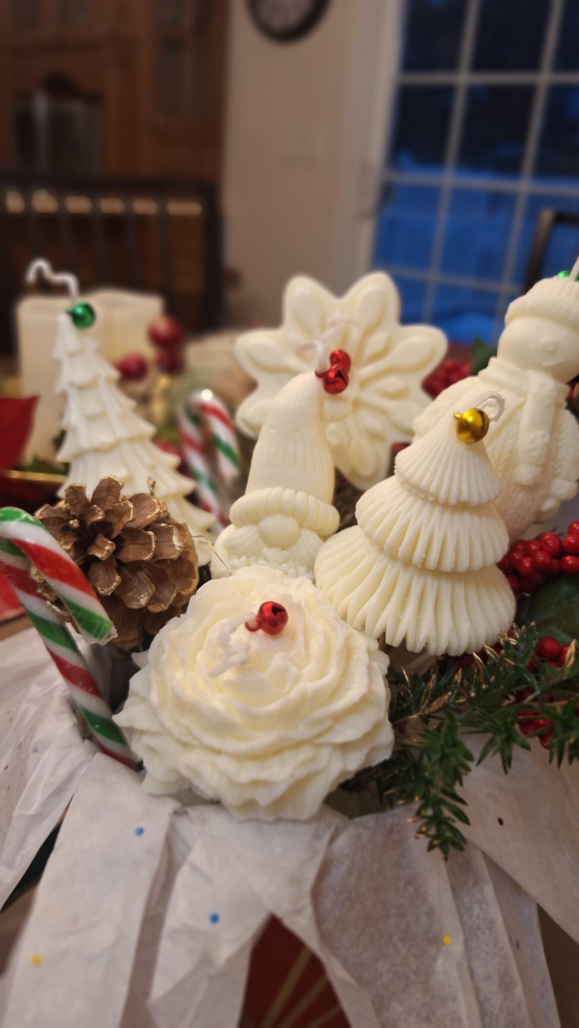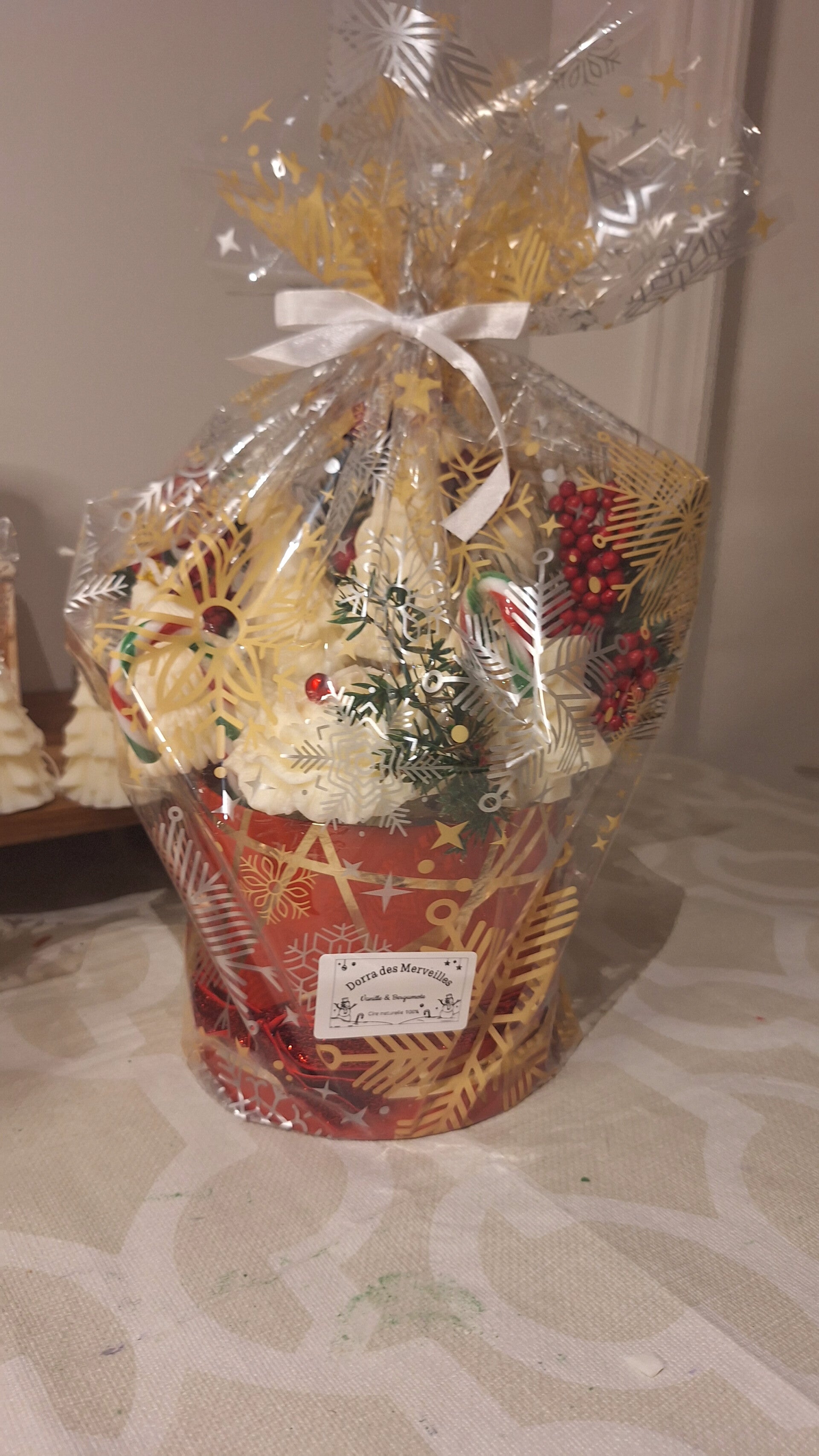 Offrez un enchantement hivernal avec notre bouquet de figurines en cire naturelle parfumée. Composé de petits bonhommes de neige, flacons givrés, lutins féeriques et sapins parfumés, ce bouquet unique diffuse douceur et magie dans chaque espace.