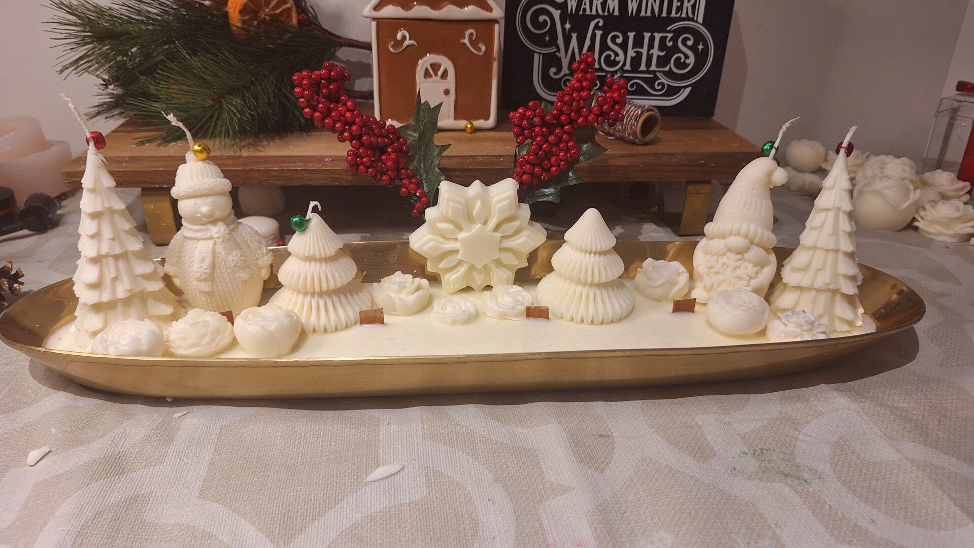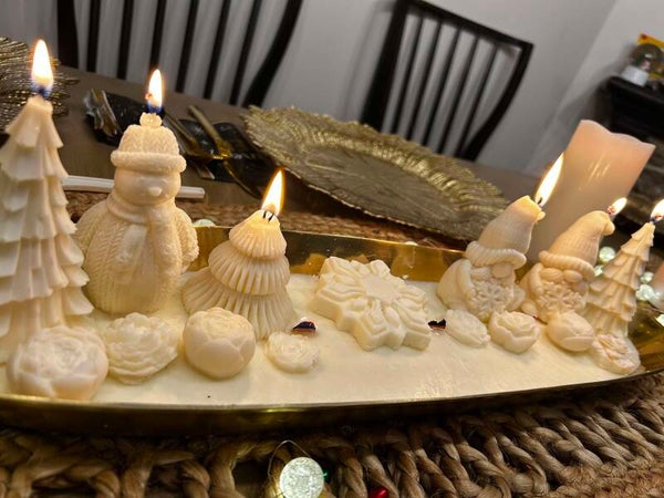 Bougie oval idéal pour centre de table avec des figurine des fêtes, qui ajoute une touche chaleureuse à vos soirées